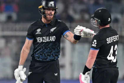 South Africa’s unbeaten run ends with a nine-wicket loss as the Kiwis chase the 170-run target with 43 balls to spare New Zealand’s Finn Allen (L) and Tim Seifert bump their fists during t...