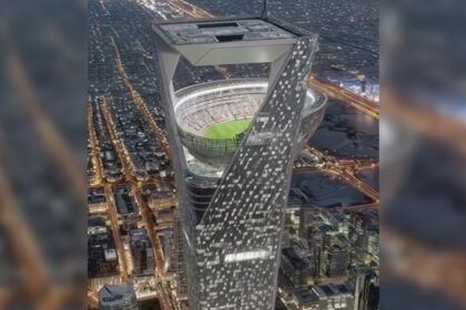 A screenshot of AI generated video of “Sky Stadium”. — X@DailyLoud An AI-generated video claiming to show one of the football stadiums for the 2034 FIFA World Cup in Svideo of glowing aren...