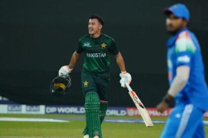 Pakistan Shaheens’ Maaz Sadaqat celebrates after they defeated India A during their Asia Cup Rising Stars match, Doha, Qatar, November 16, 2025. — ACC Maaz Sadaqat starred with an unbeaten 79 as...